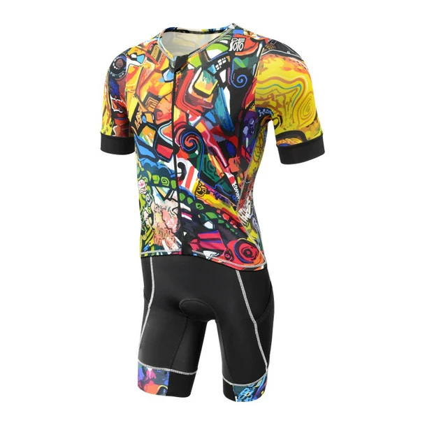 This is the triathlete’s version of the one-piece skinsuits worn by the Gran Tour riders. Â The top and bottom separate with a full-front zipper, to reveal a high waisted short that is suspended by the side and back panels, just like a bibshort. Â This Trisuit comes with a 7mm pad.